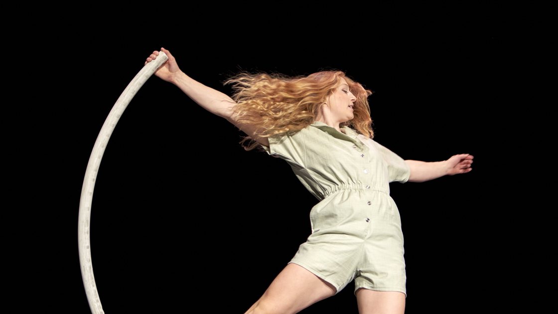 Fenja Barteldres uses her Cyr wheel in a remarkable way: without screws. This transforms the circular ring into something entirely different – wobbly and unstable, at times oddly bent, then smooth and snake-like or broken into pieces. In Cyrrealism, a whole world unfolds from a single metal wheel, forcing Fenja to continuously reinvent herself in a poetic metaphor about the imperfections of life.