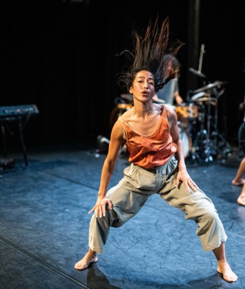 Dancers fly and catch each other in acrobatic partner work and also pick up instruments. Piano sounds and drum rhythms churn like the sea and the musicians themselves roll on the floor. The players sing of their attempt to keep their heads above water in poetic lyrics. ‘Fly like a bird in a hurricane,’ it sounds. And also, ‘Carried by these hands I trust, I'm floating to that mountaintop’. Hush ends like a hurricane, but never slacking on each other.