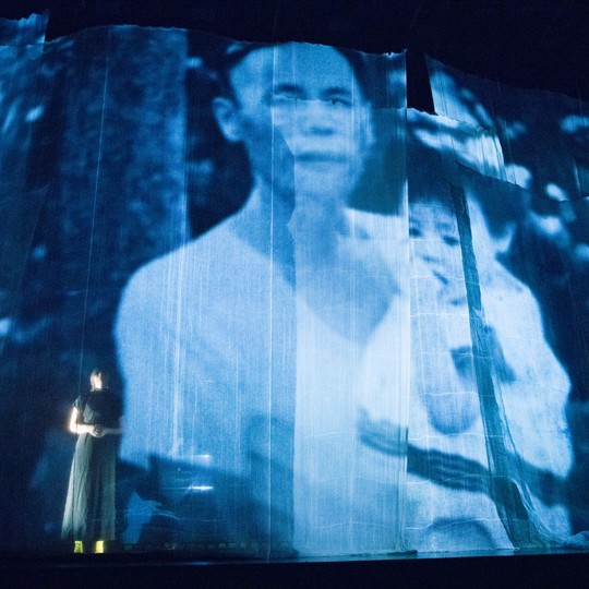 The performance (ca. 60 minutes) starts with zooming in on the beautiful Kumano mandala, where our gaze is guided by a camera that searches and searches, getting tangled in images, signs and meanings. This brings us into the full, empty space of the meantime where Tomoko, through music, autobiographical material, photos, spoken text and film images, 'writes' her history and shares it with her audience. This interim space is a twilight zone of great beauty, designed with light, colour and film images.
