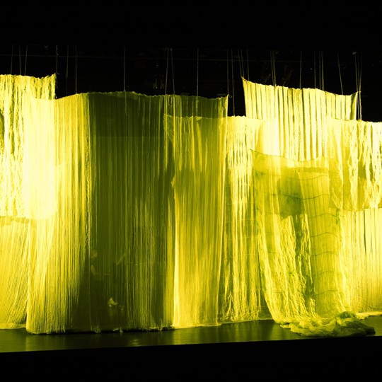 Artist and musician Tomoko Mukaiyama was born and raised in the Kumano region. The area is known for its overwhelming nature, the numerous holy places, the temples and pilgrim routes from pre-modern Japan. Experiencing Kumano means dwelling on the genesis of all existence. It is the undergoing of shifting meanings; arrival and departure dissolve into being on the move and the past, present and future become intimately intertwined. This Kumano is given shape in the performance as an interim period in which we pause to look for, find and rediscover the things and meanings we love, which are always travelling with us.