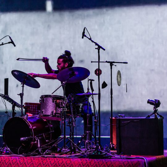 Panic Screen is an adventurous and visually rich performance that combines drums, guitar, electronics, and video. Guillermo & Nikos are former jazz students and, as Panic Screen, take you on a journey through a wide range of sonic atmospheres. With audio-reactive visuals projected live, an exciting interaction between sound and image unfolds. The result is a dynamic performance that intertwines electronic soundscapes and improvisation