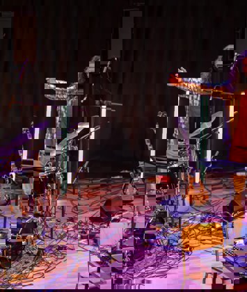 In Offering, Arefeh Hekmatpanah takes you on a unique musical journey, transforming high-frequency feedback sounds into a captivating and layered experience. As a solo performer, she moves across the stage, exploring the various sounds hidden in the space. Through live sampling and the creation of a sonic ecosystem, Arefeh investigates the relationship between space, choreography, and sound.