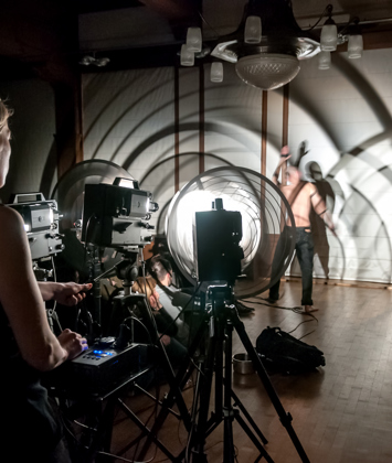 Two performers, one behind the machinery, one in the spotlight, manipulate a light-to-sound instrument, creating a charged field of attraction and repulsion. Waves of light, shadow, and raw optical sound emerge, forming an experience where it’s never entirely clear who is directing whom.