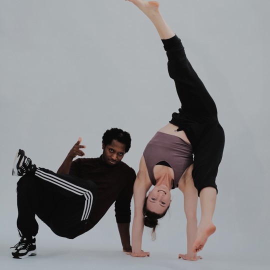 We see two completely different characters, who gradually become more and more entwined with each other. Acrobatics and breakdance (often called 'breaking' or 'b-boying' in the scene itself), two disciplines with both major differences and common ground, are used as a breeding ground to investigate how we can combine the codes and vocabularies from both forms in order to achieve something unique, without losing the separate identities. Circus is in itself a celebration of diversity. Where dancers train for years to move in exact synchrony, or to perform the same movements as others, but just a bit more beautiful and higher, circus is all about being as different and as individual as possible. The more unique your style, the better. That is also one of the similarities with break dance, where people are constantly looking for new ways of moving and signature moves that no one else is doing. The more out of the ordinary, the louder the applause. Also, both disciplines have a high power of persuasion and expression, which makes them ideally suited to get the message across in an accessible way.