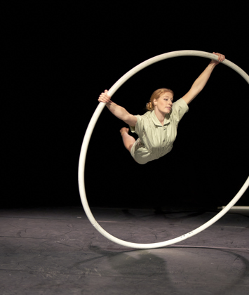‘Fenja Barteldres shines with her innovative approach to the Cyr wheel discipline and her brilliant technical skill. By deconstructing the large metal wheel and using its individual parts separately, she creates entirely new images and possibilities.’ Menno van Dyke (Circusstad Festival)