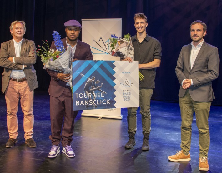 Beide makers ontvangen als prijs de presentatie van hun werk in dertien theaters tijdens komend najaar onder de noemer DansClick 23. De prijs werd uitgereikt door Jordy Clemens, wethouder Cultuur van de gemeente Heerlen, en Mat Meijs, secretaris BNG Cultuurfonds.