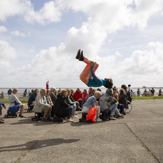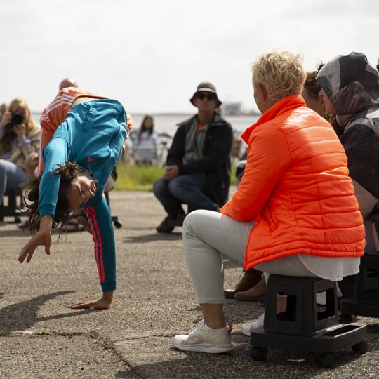 Kom en neem plaats op een van de rollende krukjes en word speler in deze beweeglijke compositie. 360, geregisseerd door Benjamin Kuitenbrouwer en Hanneke Meijers, doet een reeks speelse voorstellen. Deze voorstelling speelt zich af met en rondom het publiek. Met onverwachte wendingen en nieuwe regie-aanwijzingen verandert de groepsdynamiek en daarmee het script. Terwijl de acrobaten hun bewegingskunsten met bravoure delen, oefen jij invloed uit op de nabijheid, en op het verloop van het spel. De voorstelling nodigt uit om contact te maken, om aan te raken, om er deel van uit te maken en om te beïnvloeden. Of niets van dit alles, je kunt ook discreet opgaan in de groep. 360 wil vooral een ongedwongen samenzijn regisseren.
