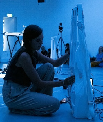 Mehrnaz komt uit een familie van klassieke violisten en presenteert deze avond een performance voor elektrische viool en elektronica. Ze verkent conflict en contrast in dit werk waarin ze fysieke beweging combineert met creative coding en sound design.