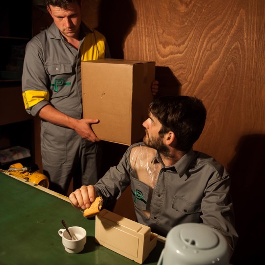 "In PAKMAN wordt de opgejaagde snelheid van onze tijd blootgelegd: eindeloze handelingen met pakjes en stempels veranderen in een fascinerend ritmisch duet van jongleur Stijn Grupping en drummer Frederik Meulyzer. Een must-see in een verrassende setting!"