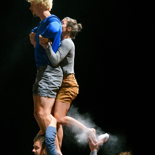Surface is een fysiek stuk geleid door de wetten van het water. Wat gebeurt er als je acrobaten laat bewegen op een vloer die steeds natter, en gladder wordt? Het water zet de groep in beweging. Hun houvast verdwijnt. Maar waar ligt de balans? Familiar Faces gaat op zoek naar de grenzen van het onmogelijke.