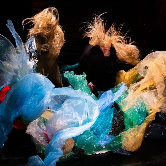 In een landschap van dansende stukken stof, plastic zakken en zwevende kubussen dwalen twee aandoenlijke figuren. Ze hebben het gevecht tegen de wind allang verloren maar weigeren om op te geven. Hoe doen we dat eigenlijk? Omgaan naar iets dat vruchtbaar is maar ook verwoestend? In Tochtgat zien we gedrapeerde stoffen op de schilderijen van Rubens die zo ongeveer tot leven lijken te komen. Soms wordt het even heel serieus en dan weer zit je hardop te lachen. De leven? De leven! Welkom in de mentale speeltuin van Jef en Peter.