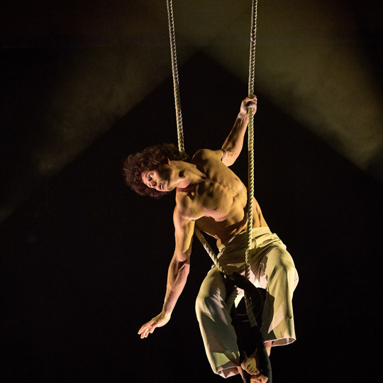 Jean-Baptiste laat de trapeze vergeten dat het een trapeze is. Hij ontrafelt en ontvouwt het object en tilt rope-techniek naar een poëtisch niveau. Mirjam koos hem omdat hij op een mooie, eenvoudige manier laat zien dat je altijd hoe erg je ook in de knoop zit er toch weer uit kan komen.