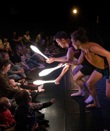 Be Kind is a circus theater experience for toddlers, 6 to 18 months, with their parents or their adult companions. In an intimate setting, they experience acrobatics and juggling amidst an interactive pop-up set. In several short scenes, little ones' abstract thinking, emotions and imagination are stimulated.