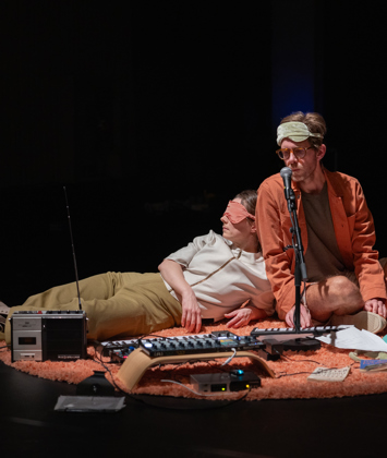 Lasse Passage is a composer and a musician. Ingrid Berger Myhre is a choreographer and a dancer. From these very different experiences and perspectives, Ingrid and Lasse meet on stage in a space of negotiation, at the periphery of their respective expertise. As a result, No Dreams, No Gold slips easily between a broad range of genres: from erotic hörspiels, to hybris lectures and relentless one-man-bands.