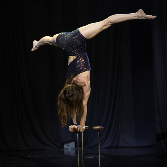 Lily's refined technique in handstands and acrobatics opens up a surrealistic world. Her work is poetic, dreamy and technically incredibly strong. Mirjam chose her because, with her mastery and refinement, she takes the audience to a place where logic dissolves and only the beauty of the moment counts.