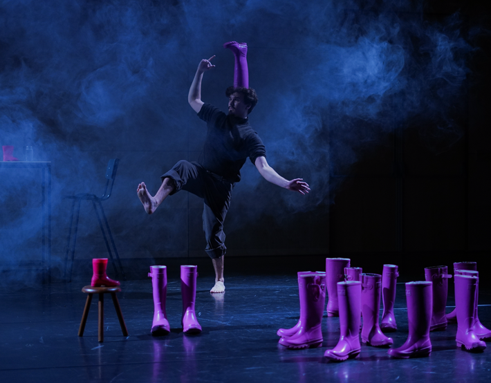‘Ja! Mijn voorstelling is groots, luidruchtig, silly and a lot of fun. Dat denk ik tenminste. Het is een mix van circus en comedy en er wordt gejongleerd met roze regenlaarzen, om een tipje van de sluier op te lichten. De voorstelling is een karakterstudie van een man die alles doet voor applaus. Je kunt het zien als een reflectie van onze generatie die graag gezien wil worden, maar je kunt het ook zien als een gast die jongleert met biertjes & laarzen en domme grappen vertelt.’