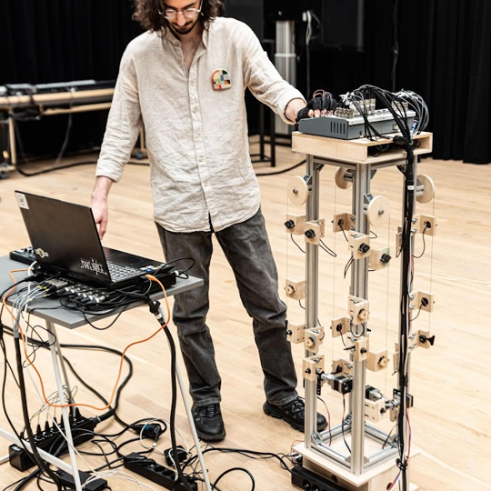 Siavash Jafari is een geluidskunstenaar, muzikant en instrumentenbouwer uit Den Haag. Bekend van zijn Misfit Harp, een zelfgebouwd elektroakoestisch snaarinstrument dat is ontworpen om evoluerende geluidsmassa's te produceren door een combinatie van elektromagnetische feedback, programmeerbare toonhoogtemodulatie en gebarencontrole. Elke snaar wordt gestemd door een netwerk van spoelen en stappenmotoren, die in realtime reageren op de bewegingen van de performer via een op maat gemaakte handschoen.