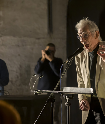 Jonathan Reus is muzikant met een achtergrond in elektronische muziek, wiskunde en wetenschap. Zijn werk onderzoekt de verhouding tussen lichaam, traditie en technologie. Jaap Blonk (1953) is een avant-gardistisch componist en performancekunstenaar, bekend om zijn unieke manier om klankpoëzie, dada en modernisme samen te brengen met het nu.